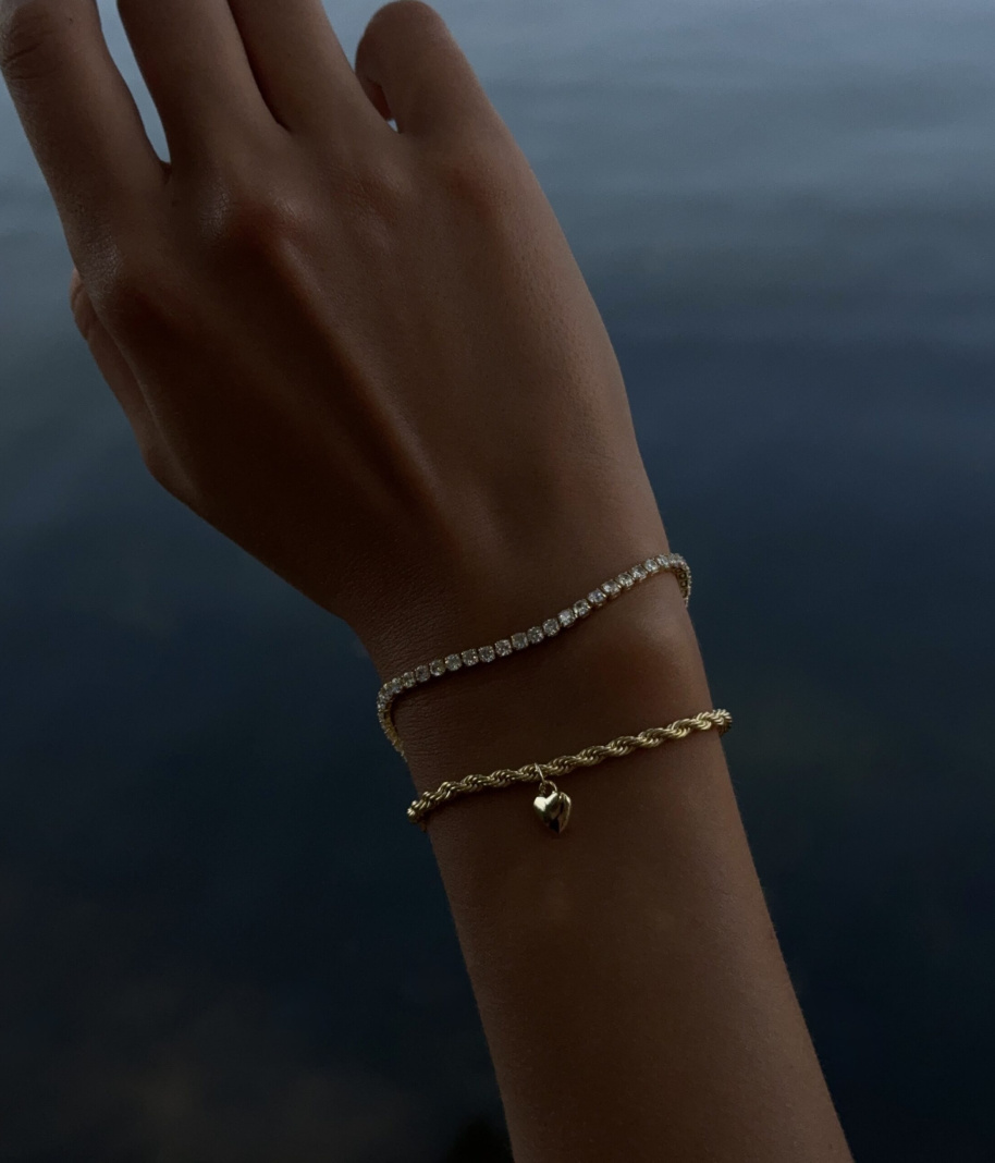 JANE Браслет двойной с сердцем золотистый