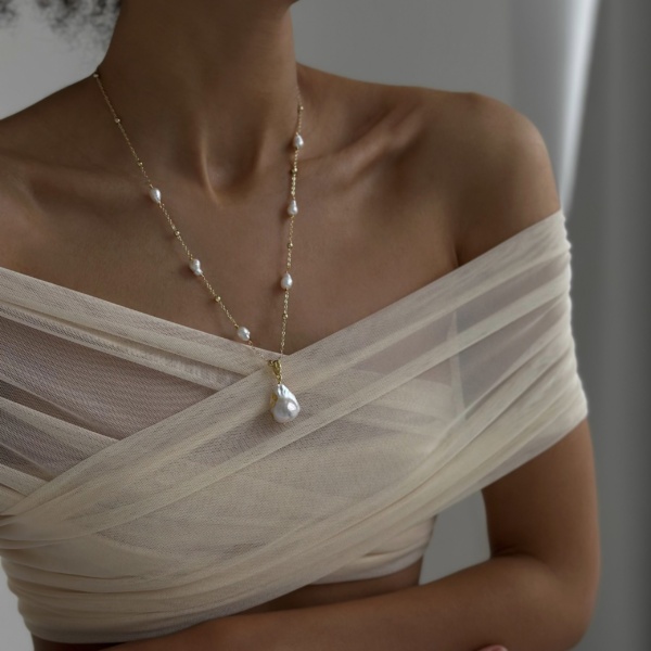 Материал: Ювелирный сплав с родиевым покрытием; жемчуг