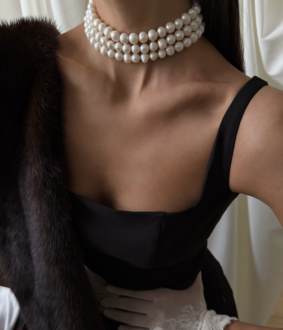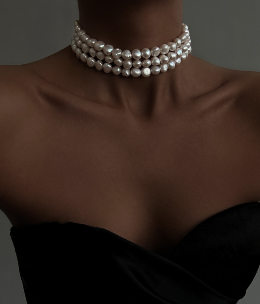 NOLA Чокер тройной из натурального жемчуга серебристый