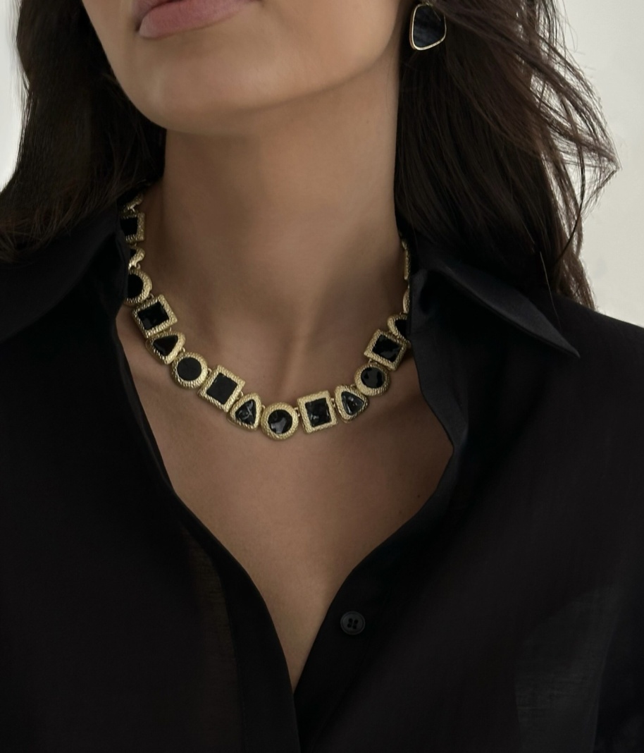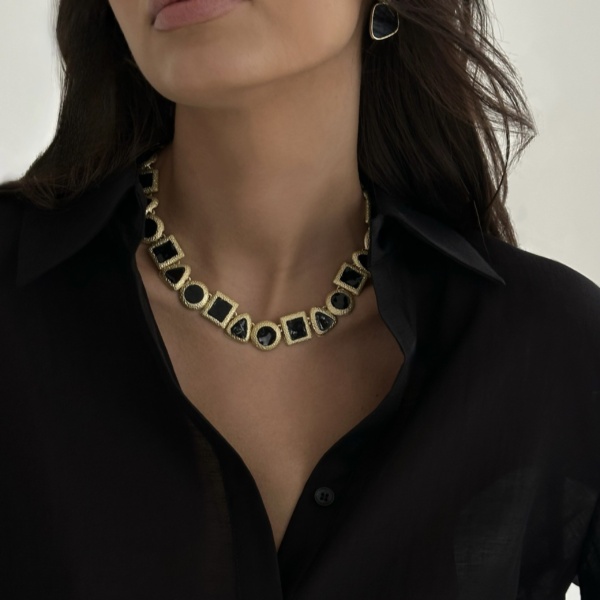 AVA Колье из черных фигур золотистое