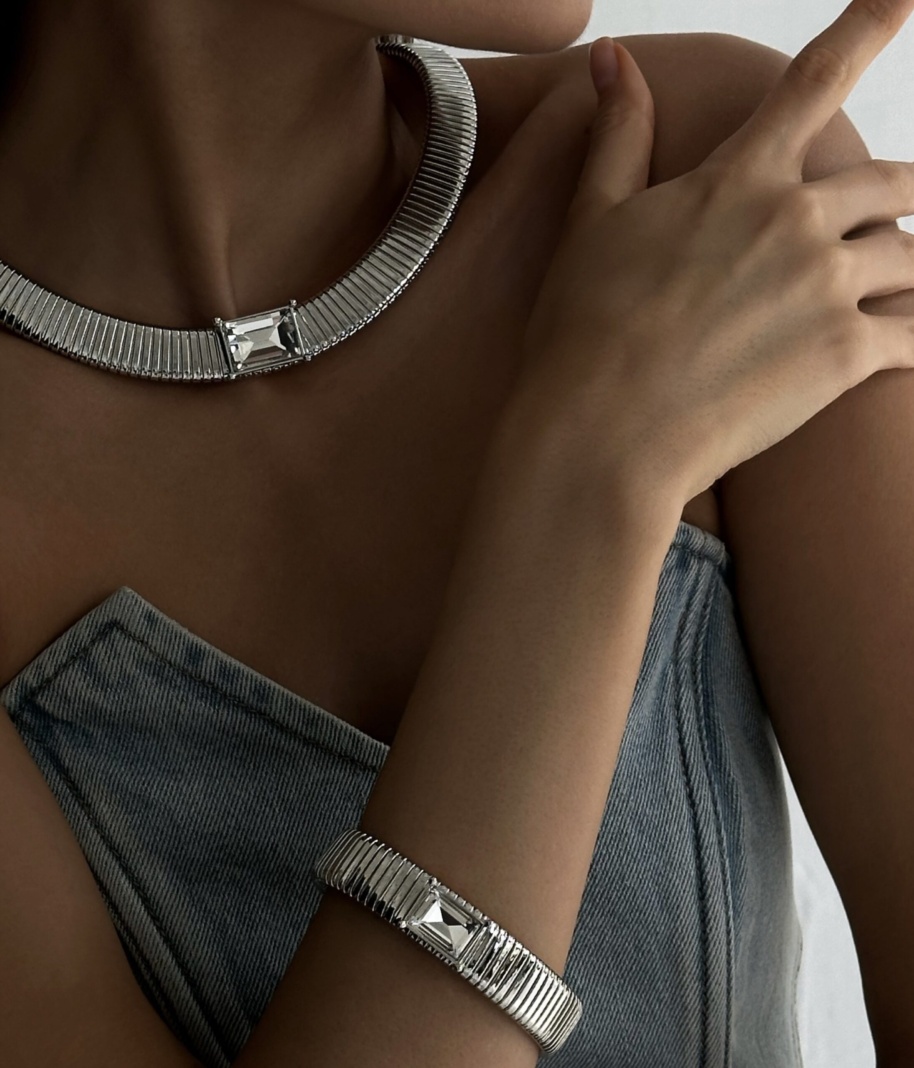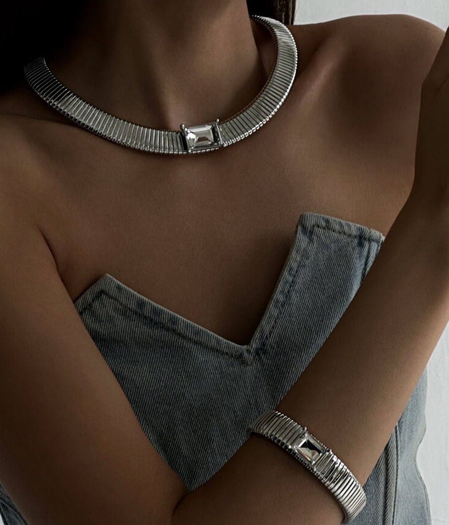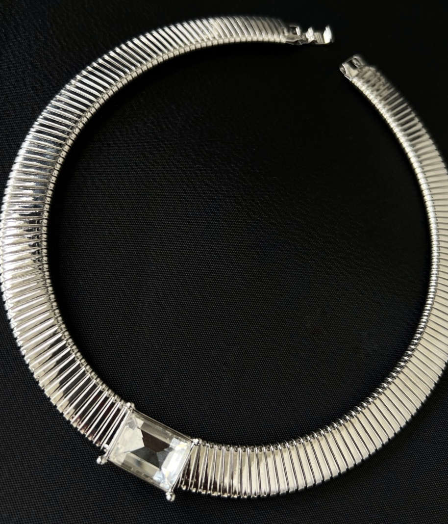 Колье Жгут с кристаллом серебристое s